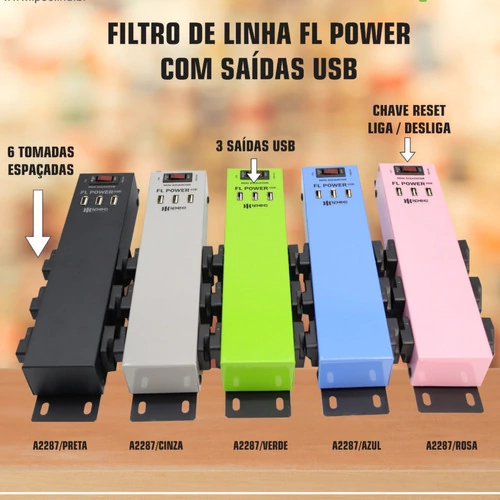 O Filtro De Linha 3 Usb 6 Tomadas 10a Fl Power Usb Preto Ipec além de vir com 6 tomadas de 10A vem também 3 entradas USB que pode ser usado para carregamento de aparelhos celulares, caixas de som , entre outros equipamentos.