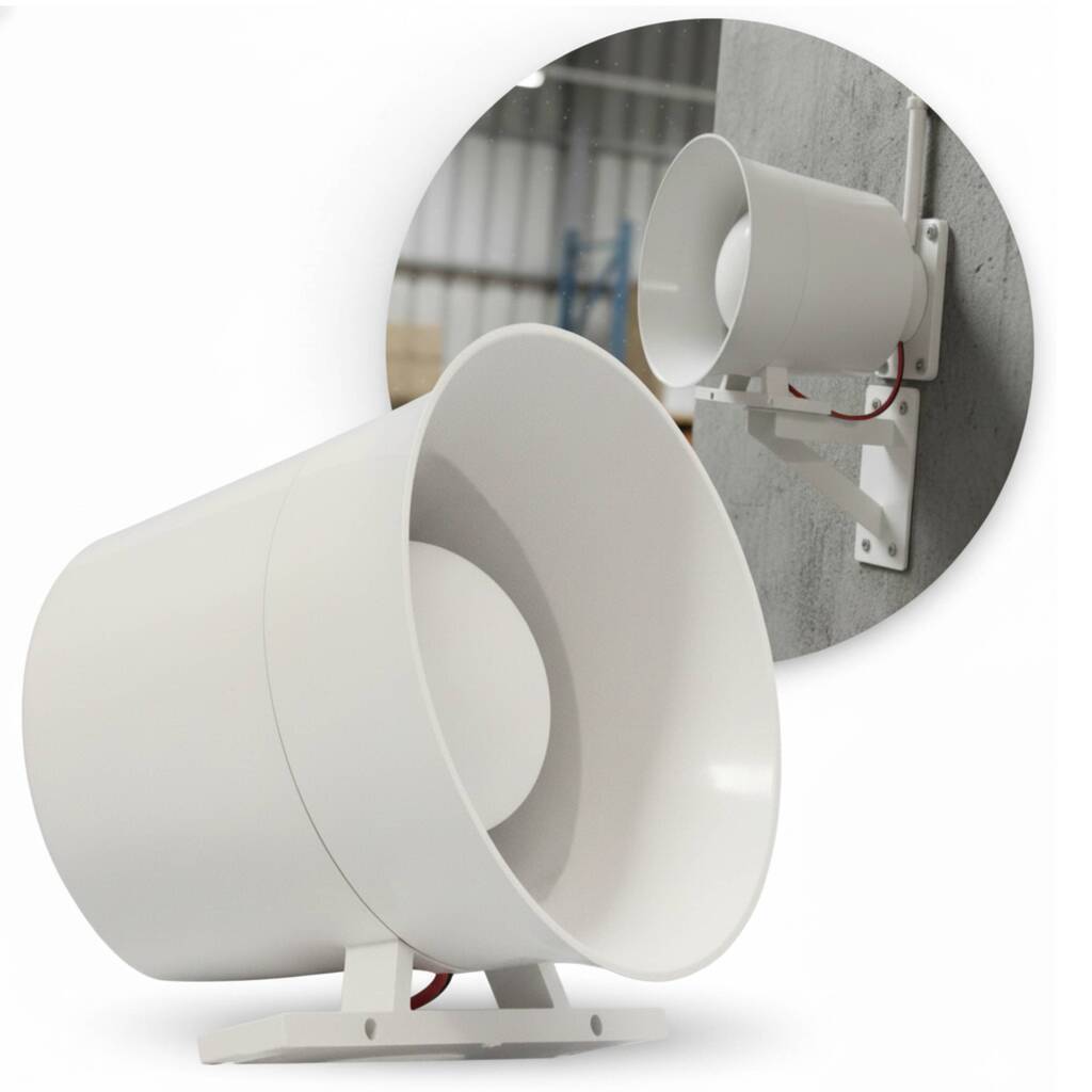 - Fácil instalação, ideal para alarmes de segurança, sirenes externas e sistemas de alerta